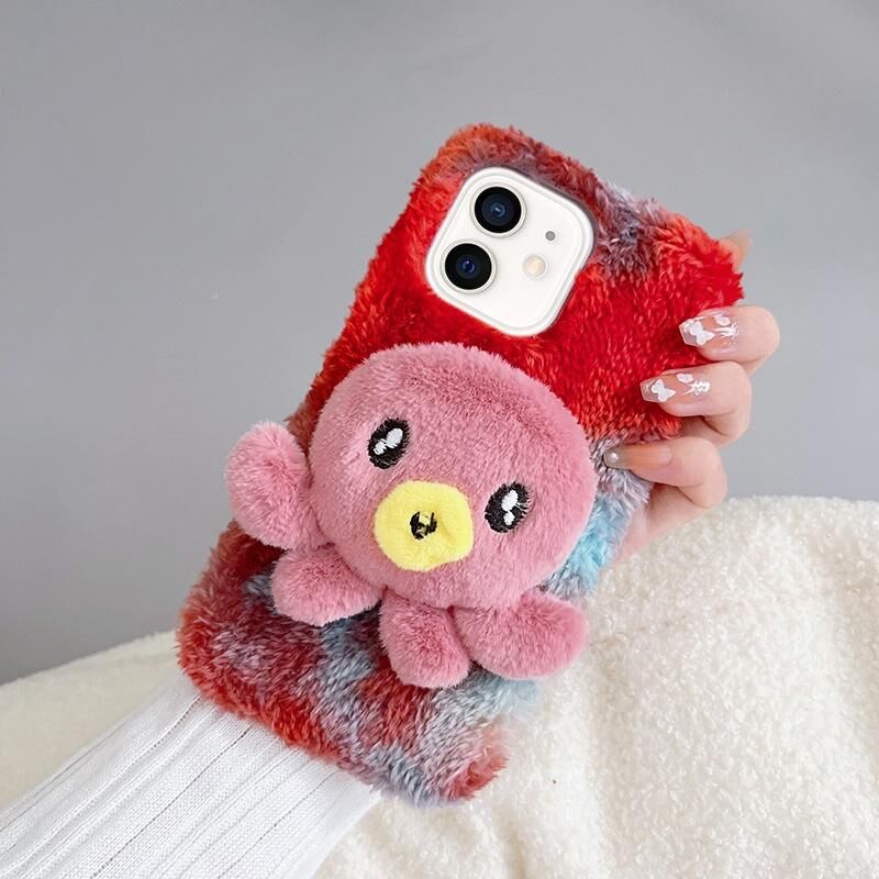 For iPhone 12 Octopus Plush TPU Phone Case(Red)