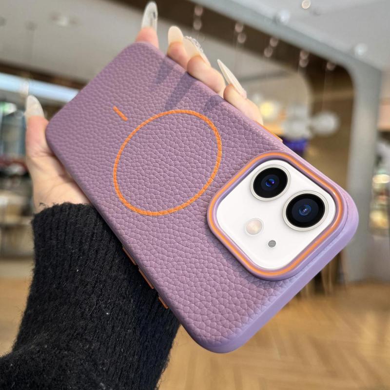 For iPhone 12 Orange Ring MagSafe Litchi Grain TPU Phone Case(Purple)