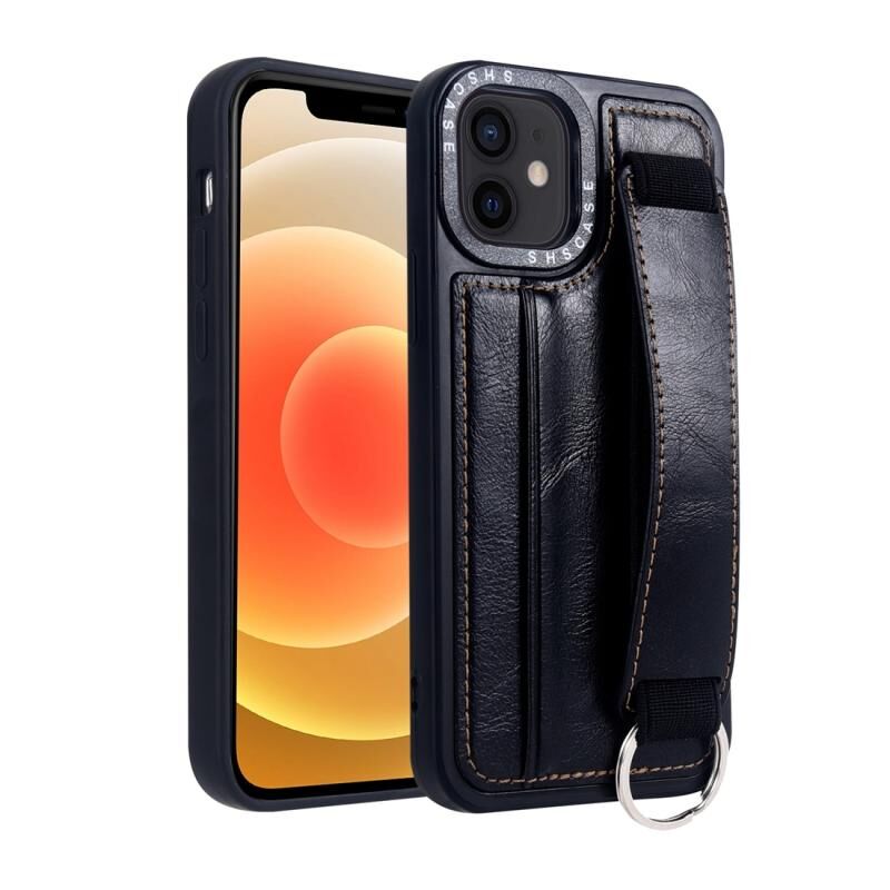 For iPhone 12 Photo Frame Card Wallet Wrist Strap Holder Back Cover Phone Case(Black)