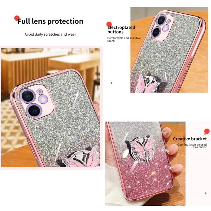 For iPhone 12 Plated Gradient Glitter Butterfly Holder TPU Phone Case(Purple)