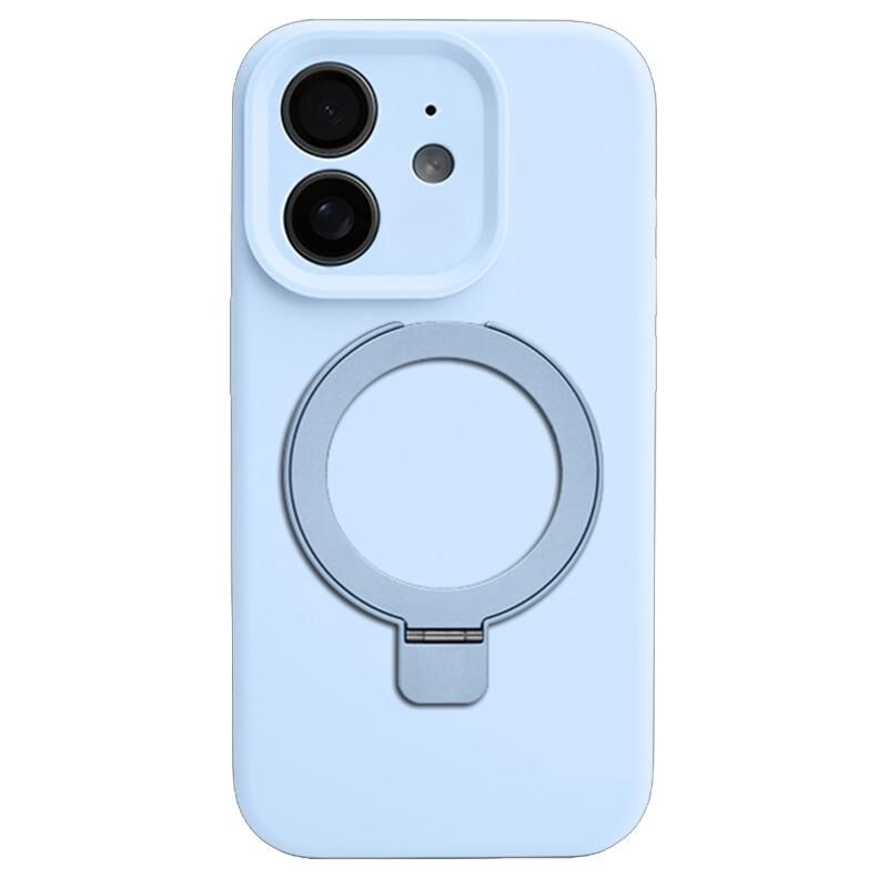 For iPhone 12 Precision Hole Liquid Silicone MagSafe Metal Ring Holder Phone Case(Cloud Blue)