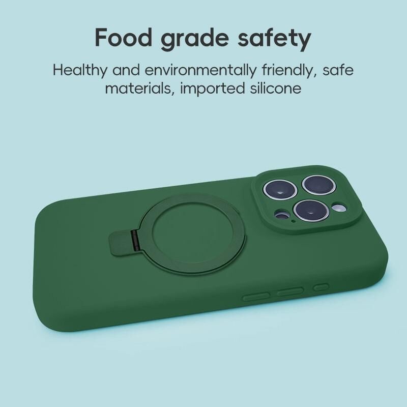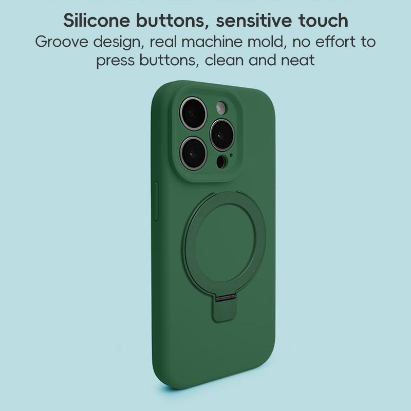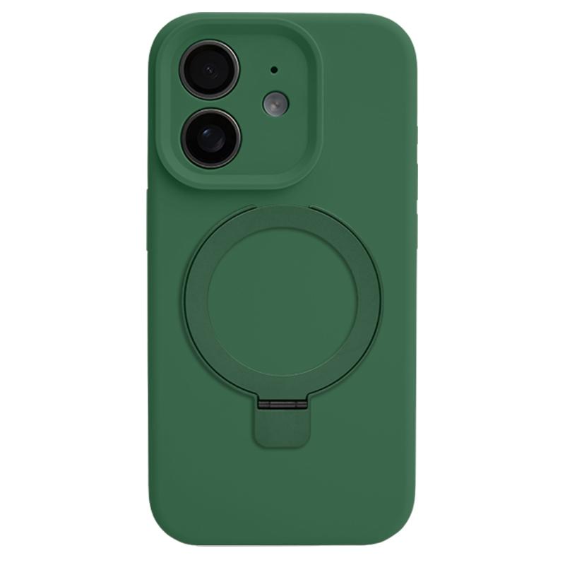 For iPhone 12 Precision Hole Liquid Silicone MagSafe Metal Ring Holder Phone Case(Green)