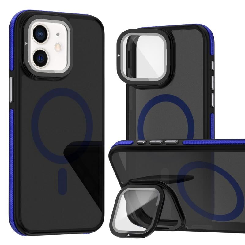 Θήκη τηλεφώνου για iPhone 12 Pro / 12 με προστασία φακού Magsafe, διχρωμία, αίσθηση δέρματος και πτυσσόμενη βάση φακού (Μπλε)