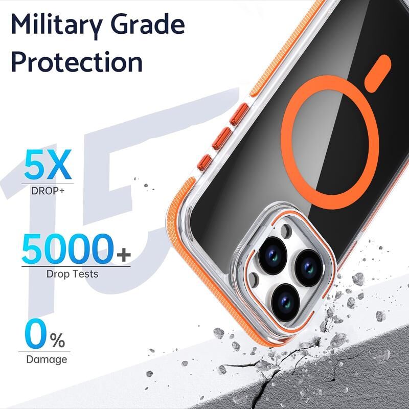 Θήκη τηλεφώνου για iPhone 12 Pro / 12 Magsafe, Διχρωμία Διαφανές Μαύρο Κάλυμμα Φακού (Πορτοκαλί)