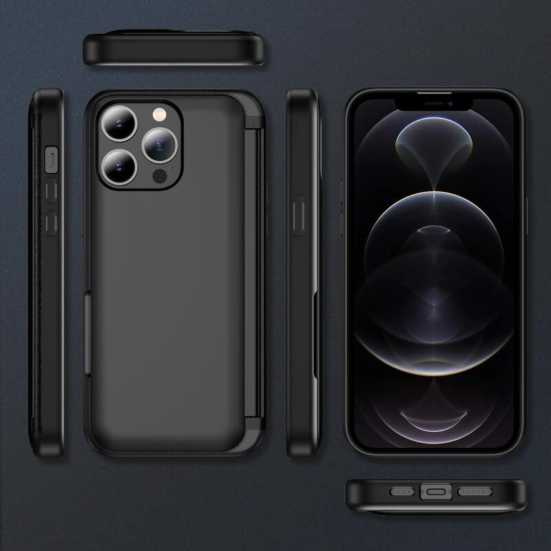 For iPhone 12 Pro 3 in 1 Flip Holder Phone Case(Black)