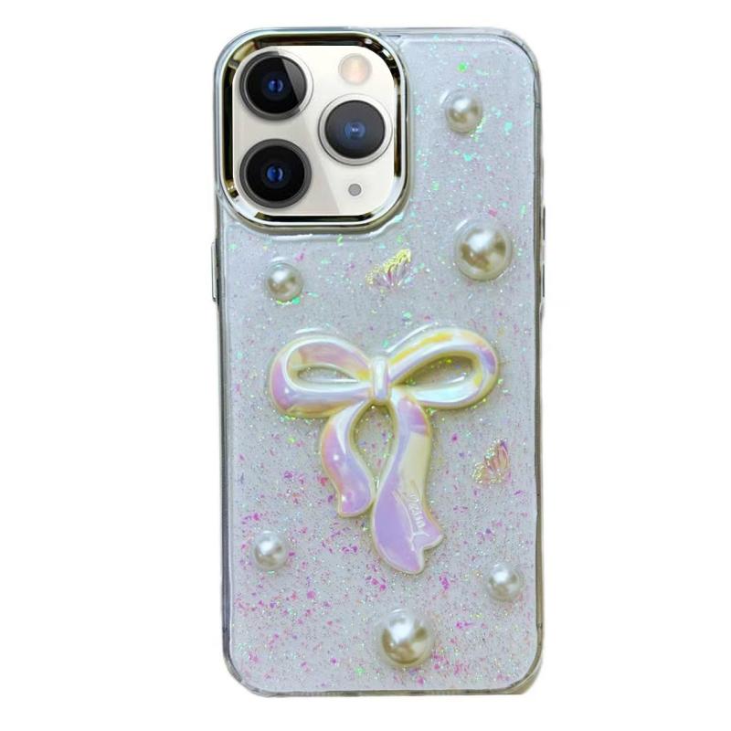Θήκη τηλεφώνου TPU για iPhone 12 Pro 3D με φιόγκο, πέρλες, λουλούδια και σχέδιο καρδιάς (Φιόγκος με πέρλες)