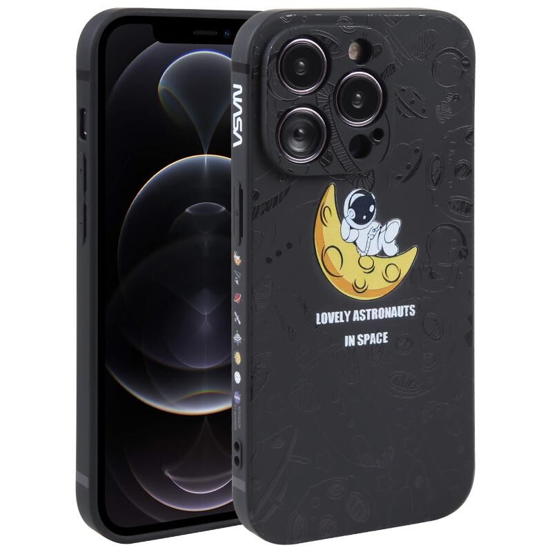 For iPhone 12 Pro Astronaut Pattern Silicone Straight Edge Phone Case(Lovely Astronaut-Black)
