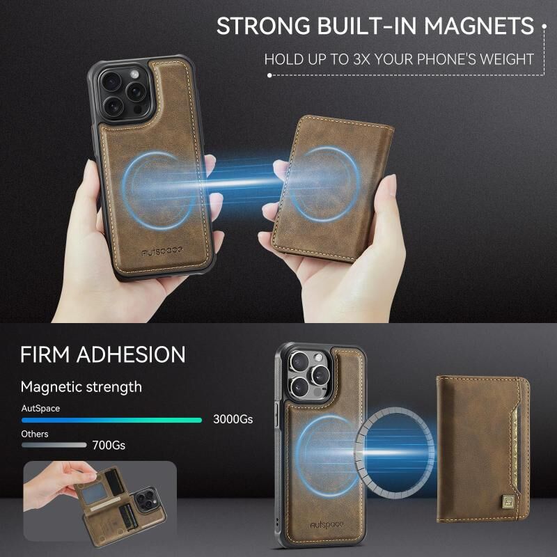 For iPhone 12 Pro AutSpace A13 MagSafe Magnetic RFID Flip Card Bag Phone Case(Coffee) (AutSpace)