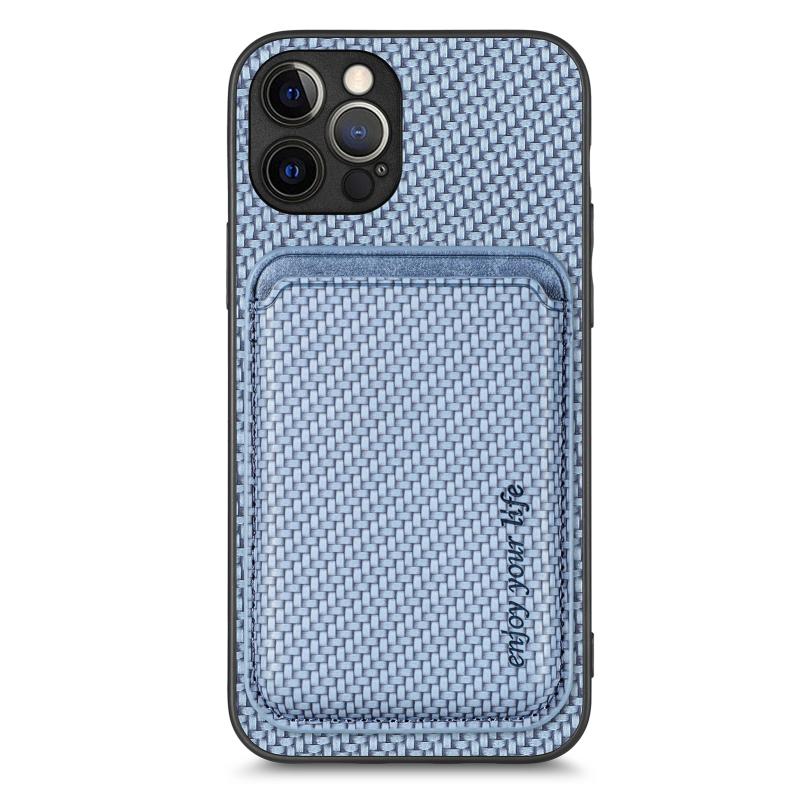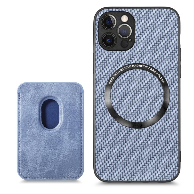 For iPhone 12 Pro Carbon Fiber Leather Card Magsafe Magnetic Phone Case(Blue)