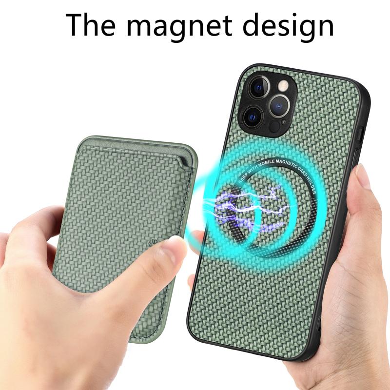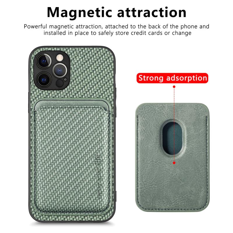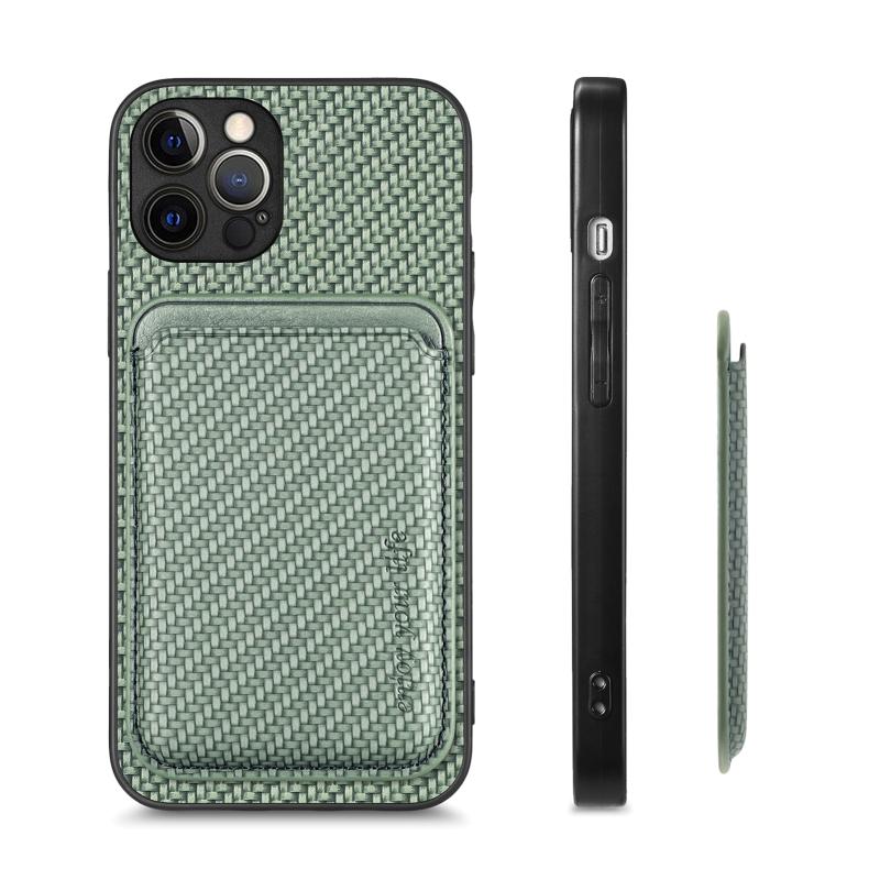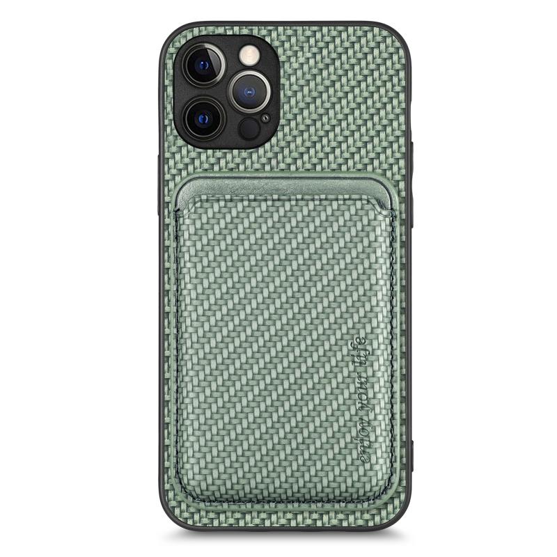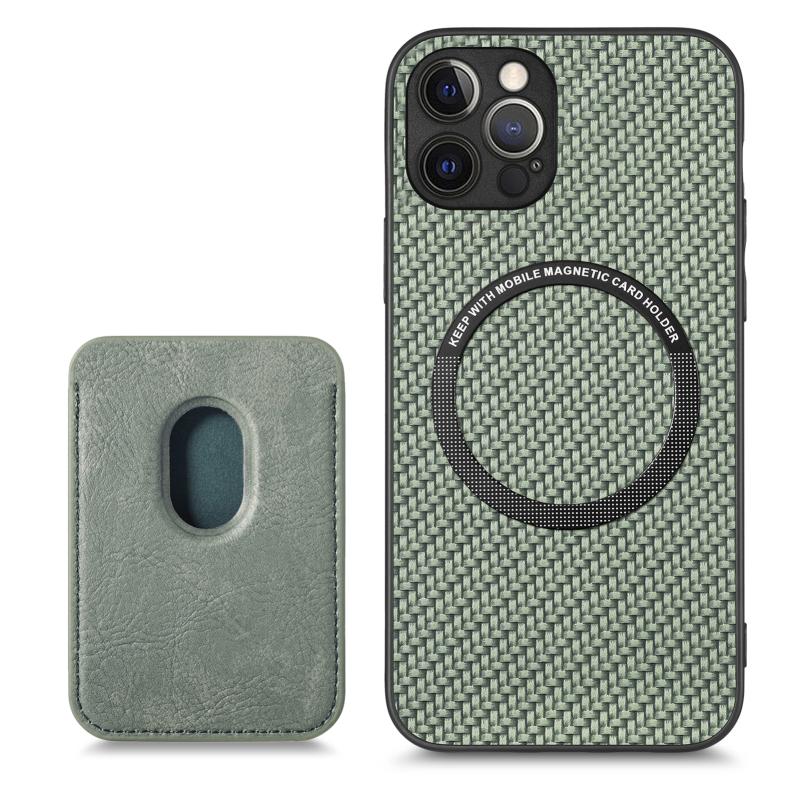 For iPhone 12 Pro Carbon Fiber Leather Card Magsafe Magnetic Phone Case(Green)