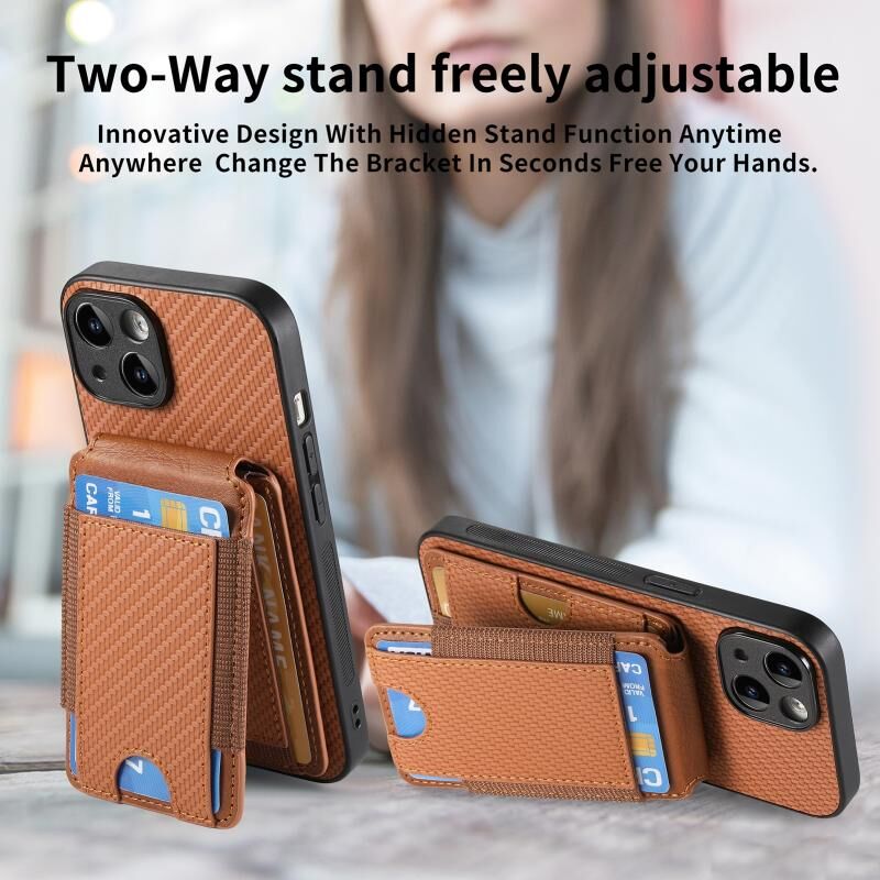 For iPhone 12 Pro Carbon Fiber Vertical Flip Wallet Stand Phone Case(Brown)