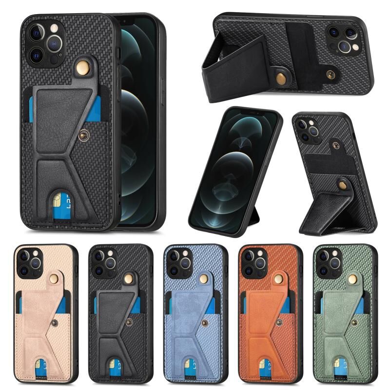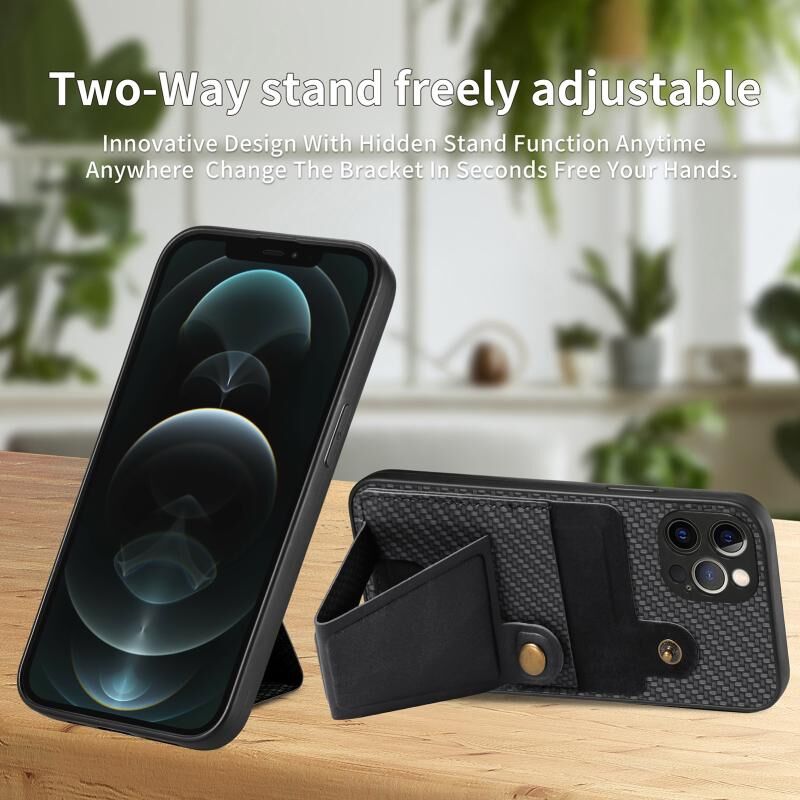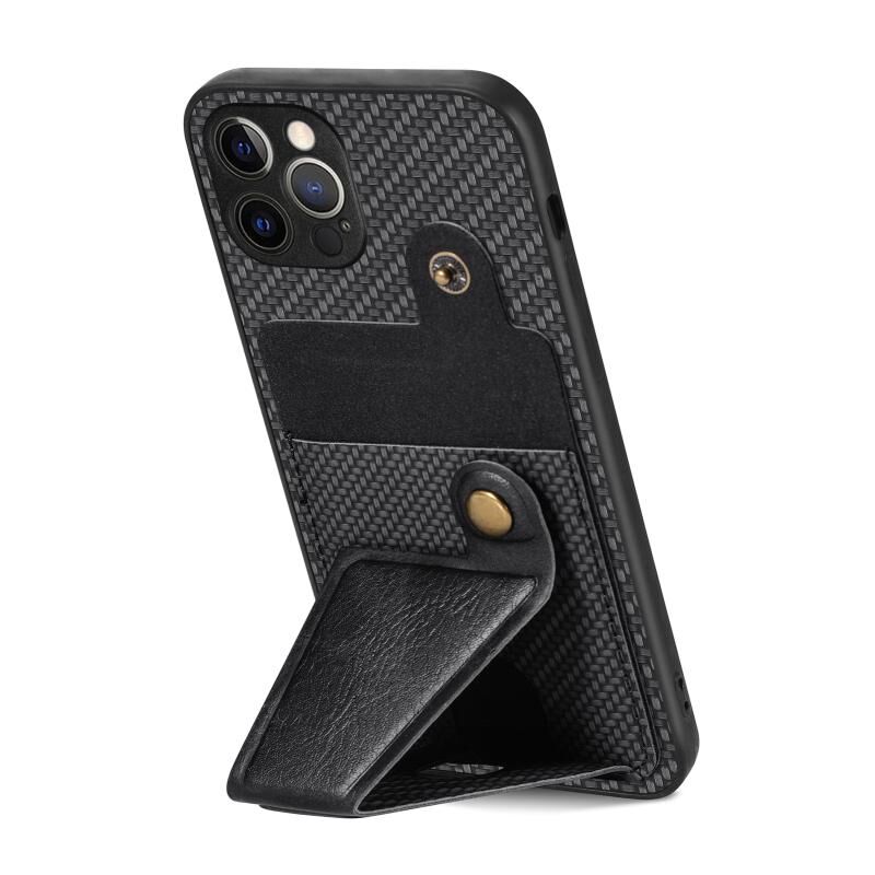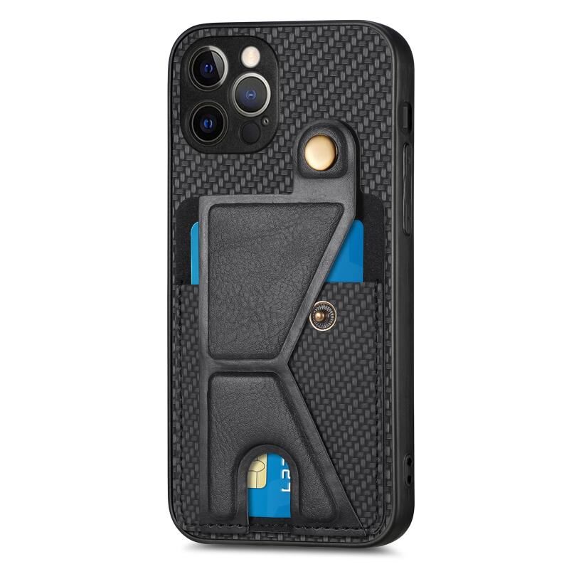 For iPhone 12 Pro Carbon Fiber Wallet Flip Card K-shaped Holder Phone Case(Black)