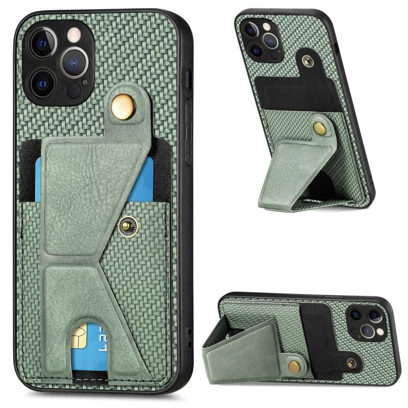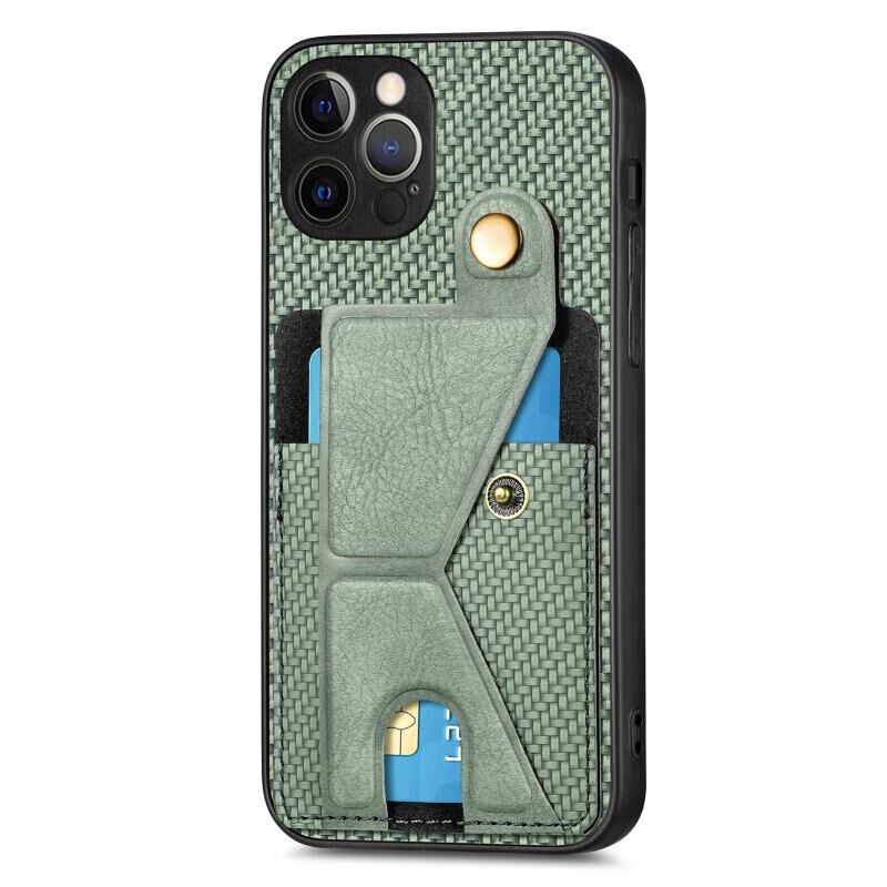 For iPhone 12 Pro Carbon Fiber Wallet Flip Card K-shaped Holder Phone Case(Green)