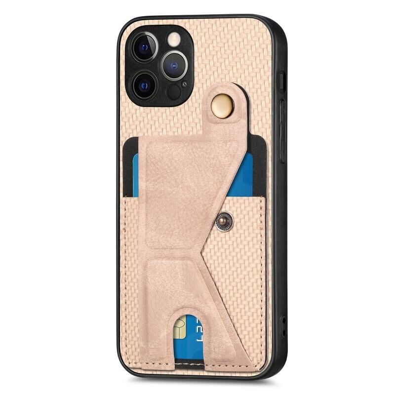 For iPhone 12 Pro Carbon Fiber Wallet Flip Card K-shaped Holder Phone Case(Khaki)