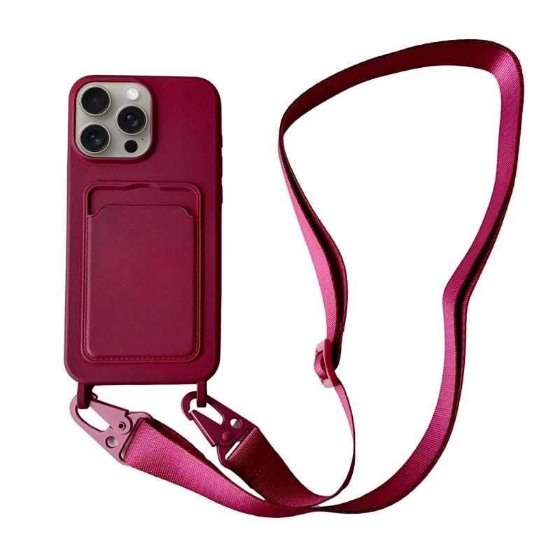 Θήκη για iPhone 12 Pro με θήκη κάρτας, υγρή σιλικόνη με κορδόνι (Μαύρο)