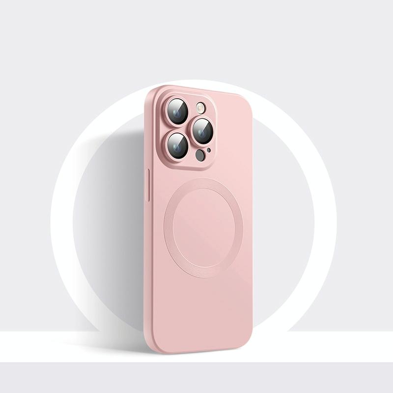 For iPhone 12 Pro CD Texture MagSafe Liquid Silicone Phone Case(Light Pink)