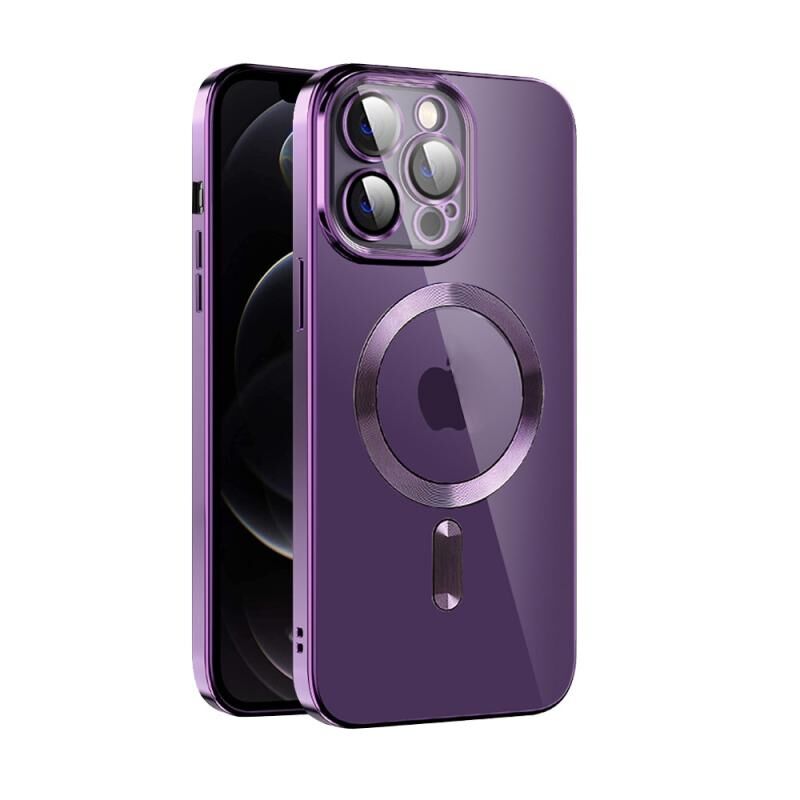 For iPhone 12 Pro CD Texture Plating TPU MagSafe Phone Case with Lens Film(Dark Purple)