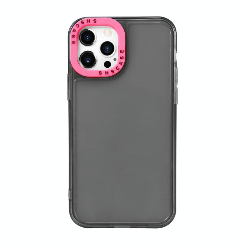 Θήκη iPhone 12 Pro Διαφανής TPU με Αντίθεση Χρωμάτων & Προστασία Φακού (Μαύρο + Ροζ Κόκκινο)