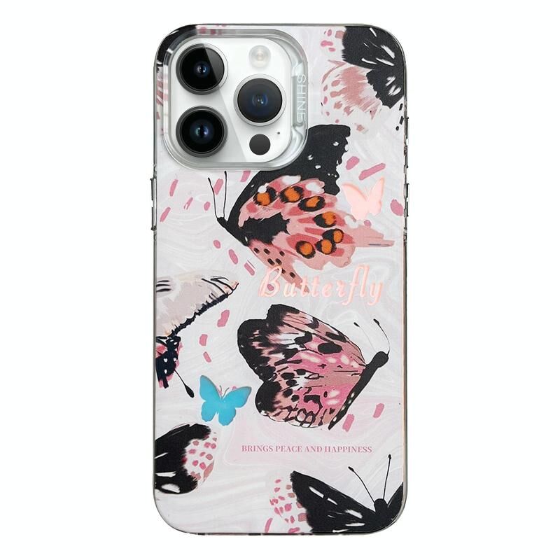 For iPhone 12 Pro Colorful Pattern TPU + PC Phone Case(Pink Butterflies)