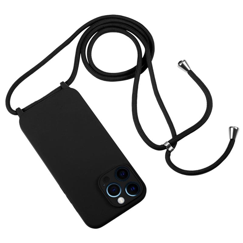 For iPhone 12 Pro Crossbody Lanyard Liquid Silicone Case(Black)