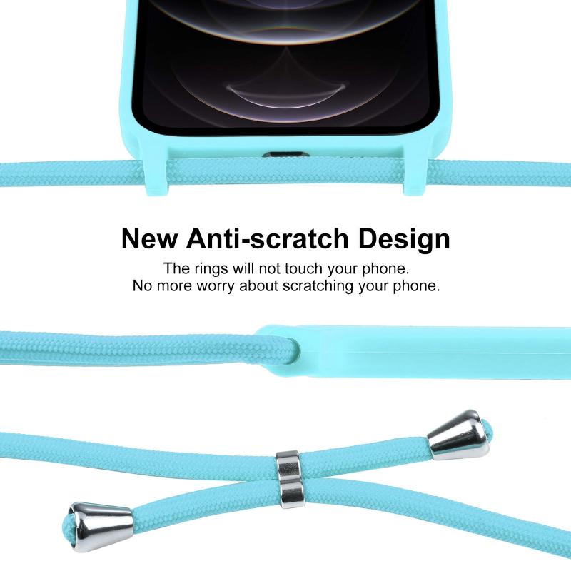 For iPhone 12 Pro Crossbody Lanyard Liquid Silicone Case(Ice Blue)