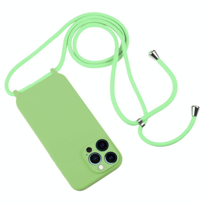 For iPhone 12 Pro Crossbody Lanyard Liquid Silicone Case(Matcha Green)