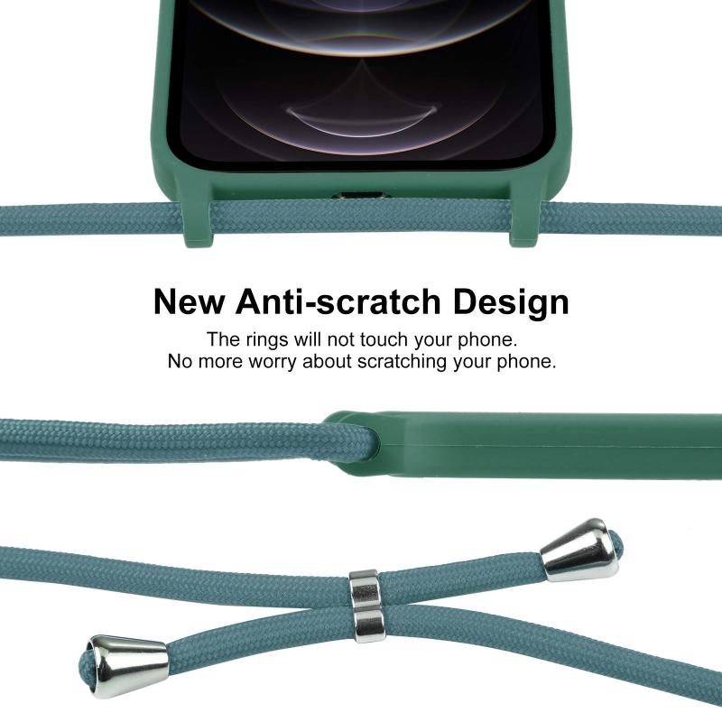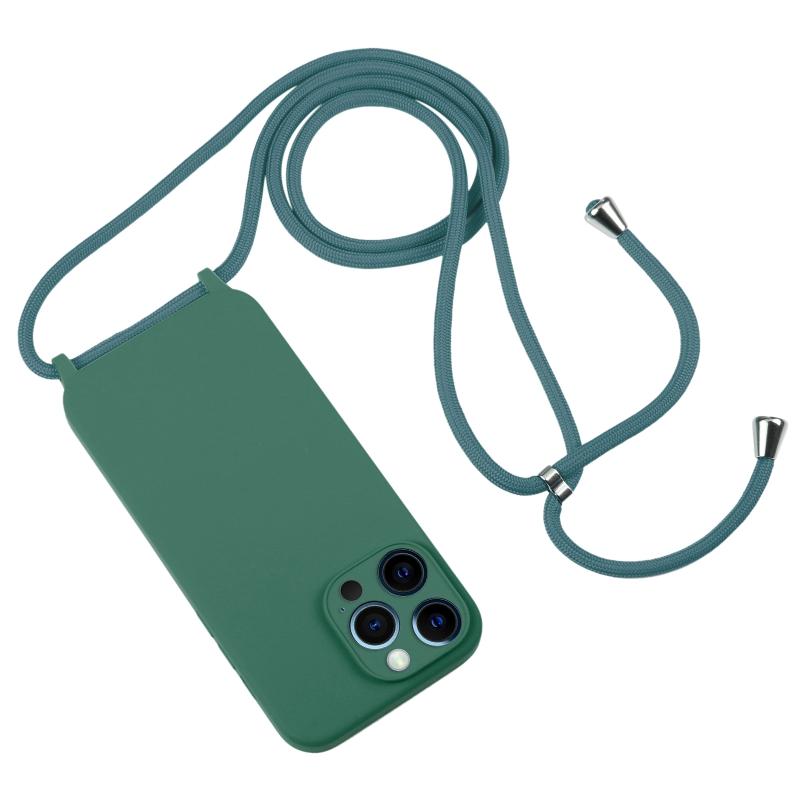 For iPhone 12 Pro Crossbody Lanyard Liquid Silicone Case(Pine Needle Green)