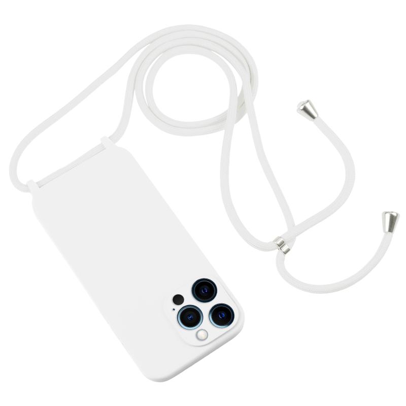 For iPhone 12 Pro Crossbody Lanyard Liquid Silicone Case(White)