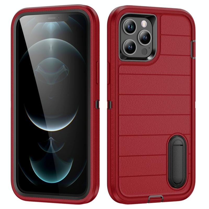 Θήκη κινητού τηλεφώνου iPhone 12 Pro Defender Gen2, ανθεκτική από πολυανθρακικό + σιλικόνη με βάση στήριξης (Κόκκινο+Μαύρο)
