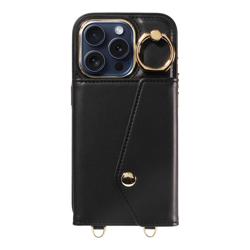 For iPhone 12 Pro Diagonal Crossbody Ring Organ Wallet Leather Back Phone Case(Black)