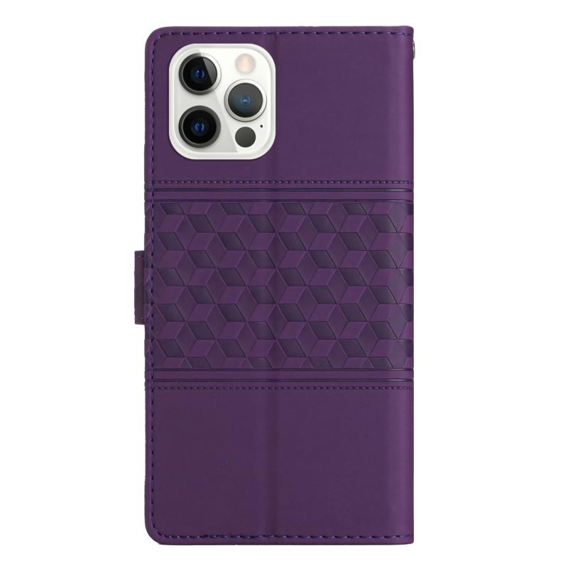 For iPhone 12 Pro Diamond Embossed Skin Feel Leather Phone Case with Lanyard(Purple)
