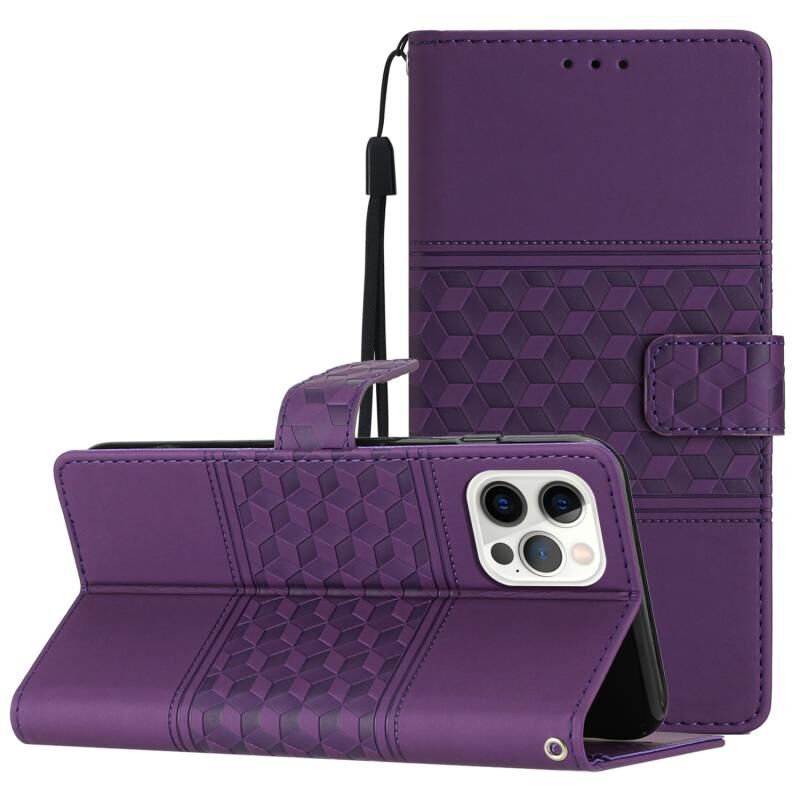 Θήκη τηλεφώνου από δέρμα με ανάγλυφο διαμαντιού για iPhone 12 Pro με κορδόνι (Καφέ)