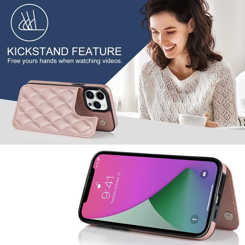 For iPhone 12 Pro Double Buckle Rhombic PU Leather Phone Case(Rose Gold)
