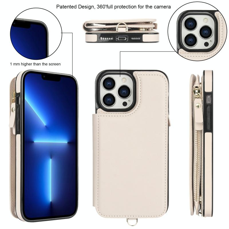 For iPhone 12 Pro Double Flap Zipper RFID Leather Phone Case with Short Lanyard(White)