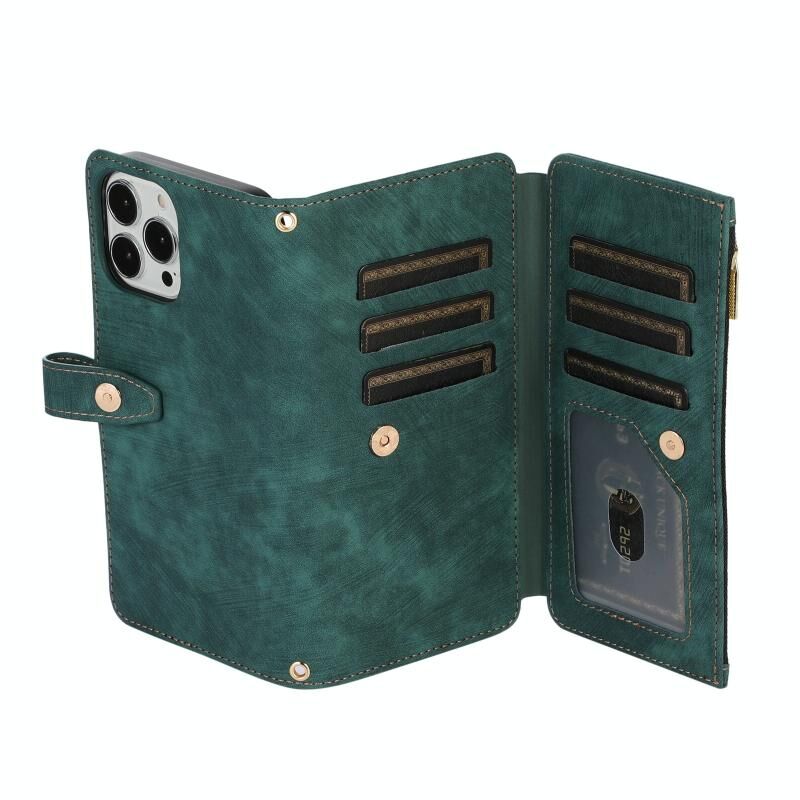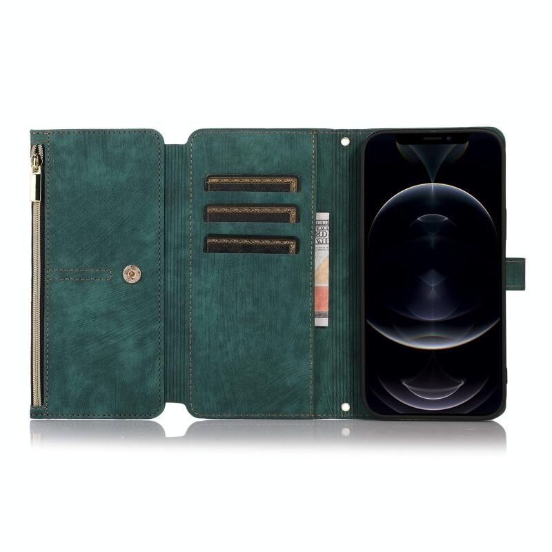 For iPhone 12 Pro Dream 9-Card Wallet Zipper Bag Leather Phone Case(Green)