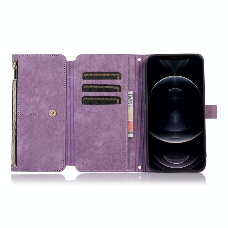 For iPhone 12 Pro Dream 9-Card Wallet Zipper Bag Leather Phone Case(Purple)