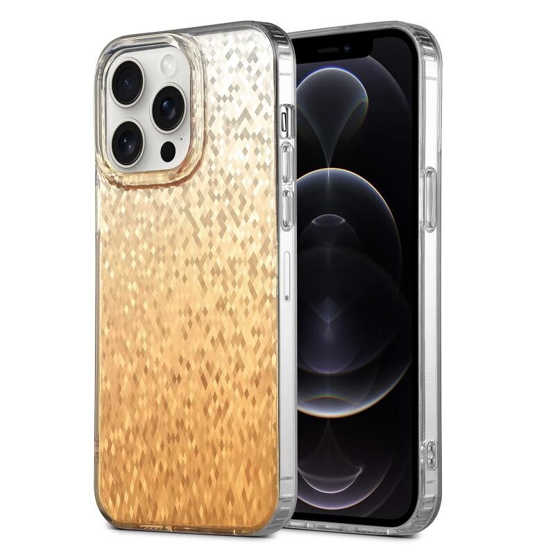 For iPhone 12 Pro Dynamic Colorful Rhombus Diamond Series PC + TPU Phone Case(Gold)