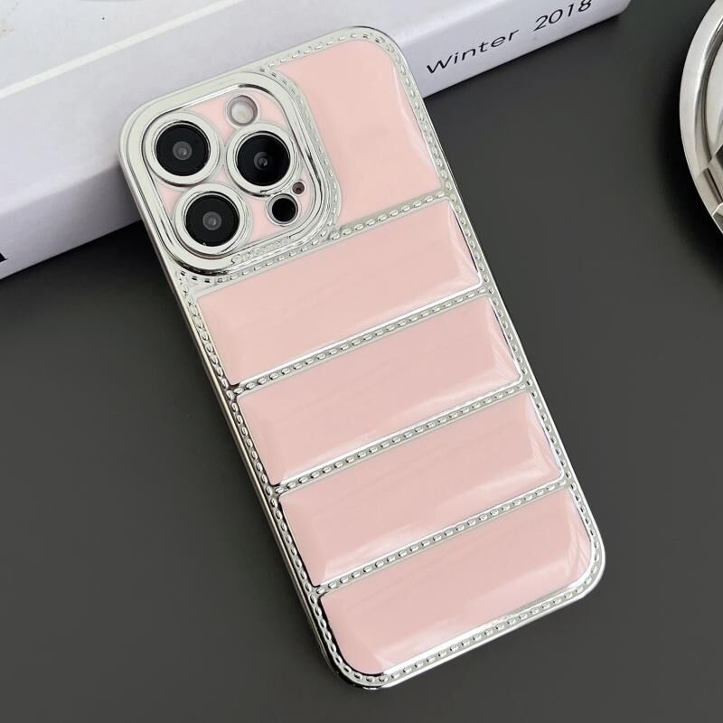 For iPhone 12 Pro Electroplated Silver Edge Eiderdown TPU Phone Case(Pink)