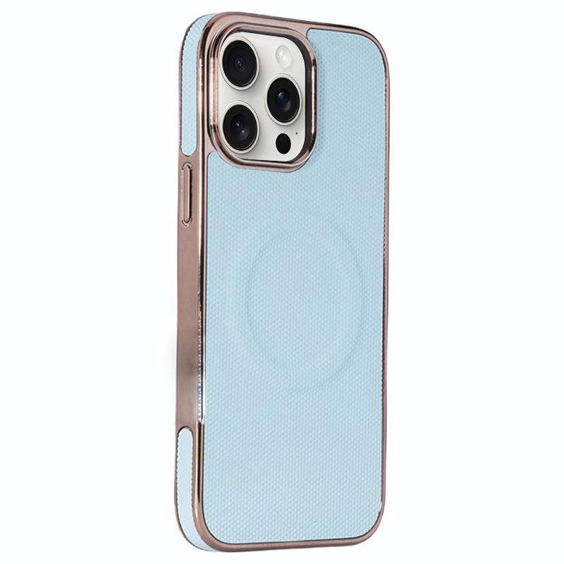For iPhone 12 Pro Electroplating Soft Side Sticker Leather MagSafe Phone Case(Sky Blue)