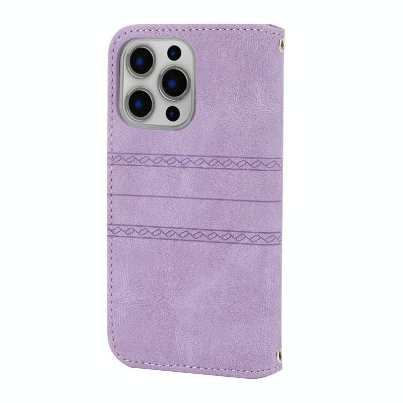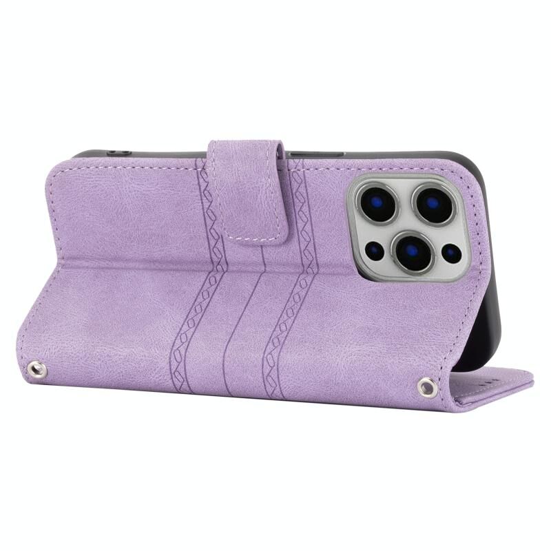 For iPhone 12 Pro Embossed Striped Magnetic Buckle PU + TPU Horizontal Flip Leather Case with Holder & Card Slot & Wallet & Photo Frame & Sling(Purple)