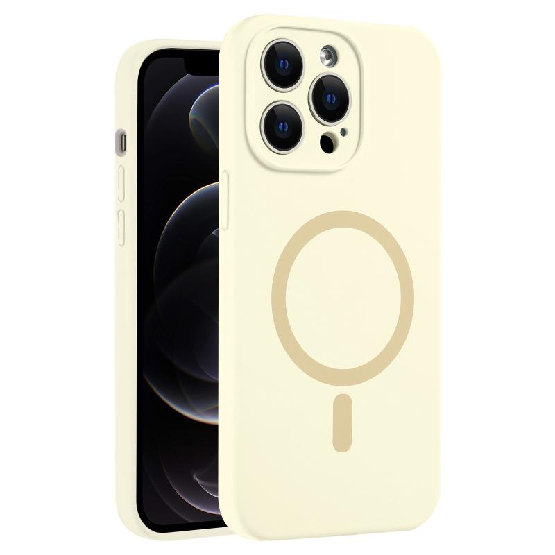 For iPhone 12 Pro Fine Hole Pure Color Liquid Silicone MagSafe Phone Case(Antique White)