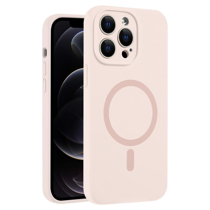 For iPhone 12 Pro Fine Hole Pure Color Liquid Silicone MagSafe Phone Case(Pink)