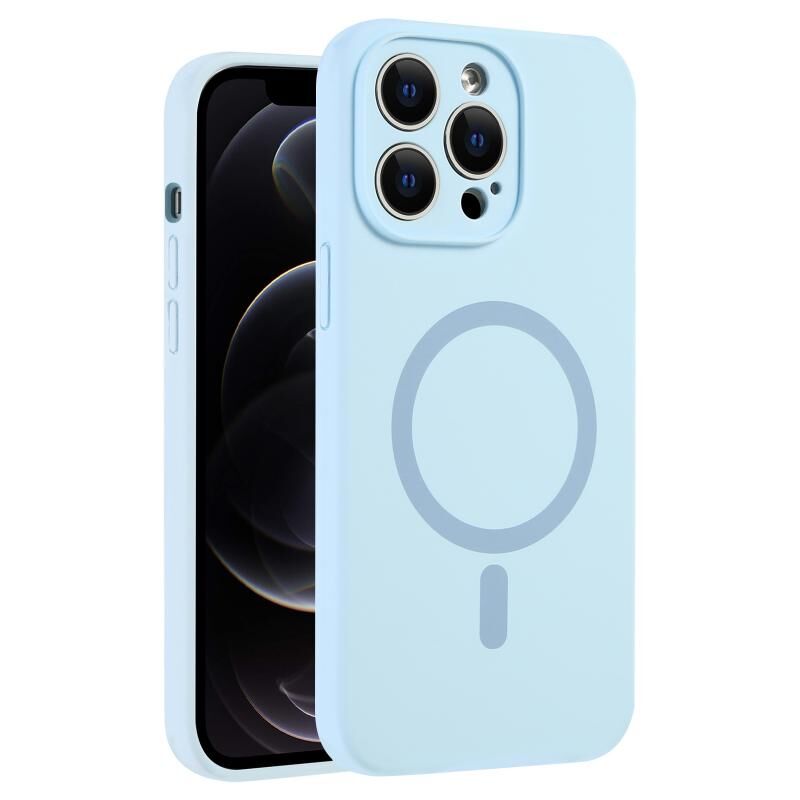 For iPhone 12 Pro Fine Hole Pure Color Liquid Silicone MagSafe Phone Case(Sierra Blue)