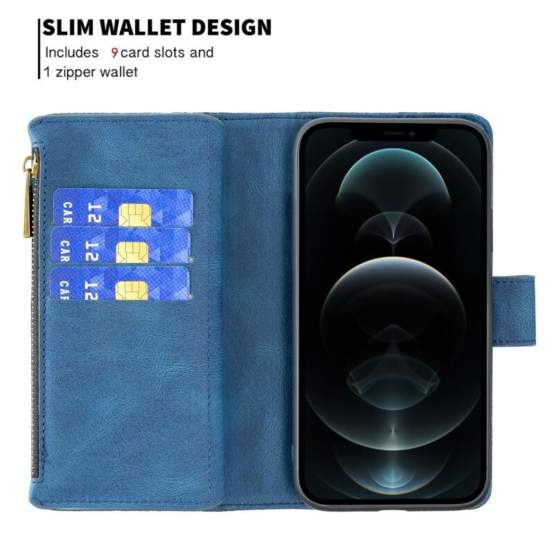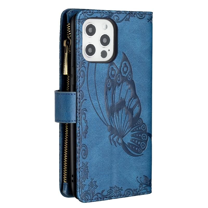 For iPhone 12 Pro Flying Butterfly Embossing Pattern Zipper Horizontal Flip Leather Case with Holder & Card Slots & Wallet(Blue)