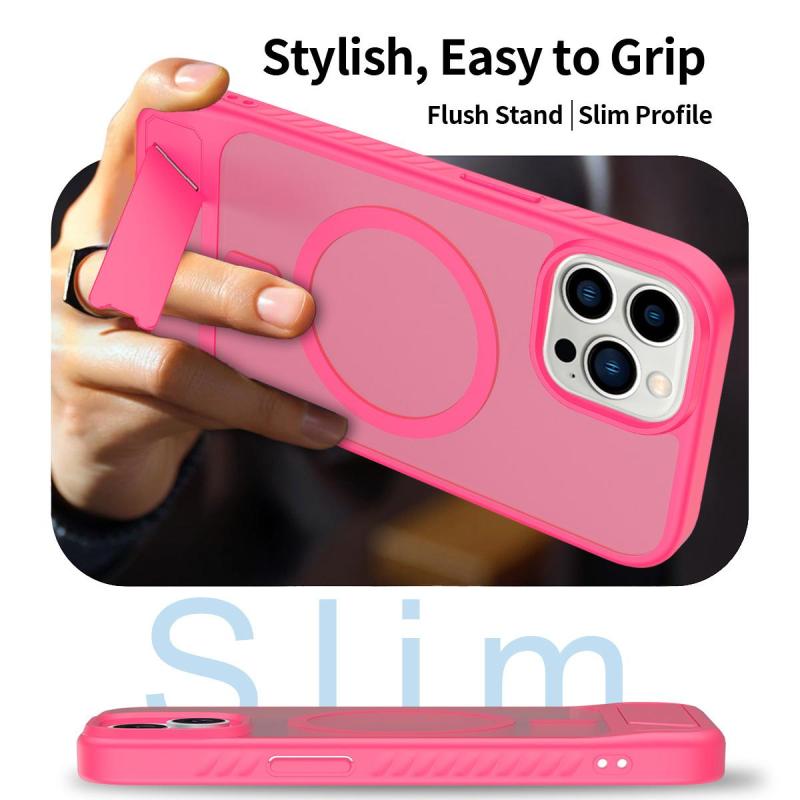 For iPhone 12 Pro Frosted Holder PC Hybrid TPU MagSafe Phone Case(Rose Red)