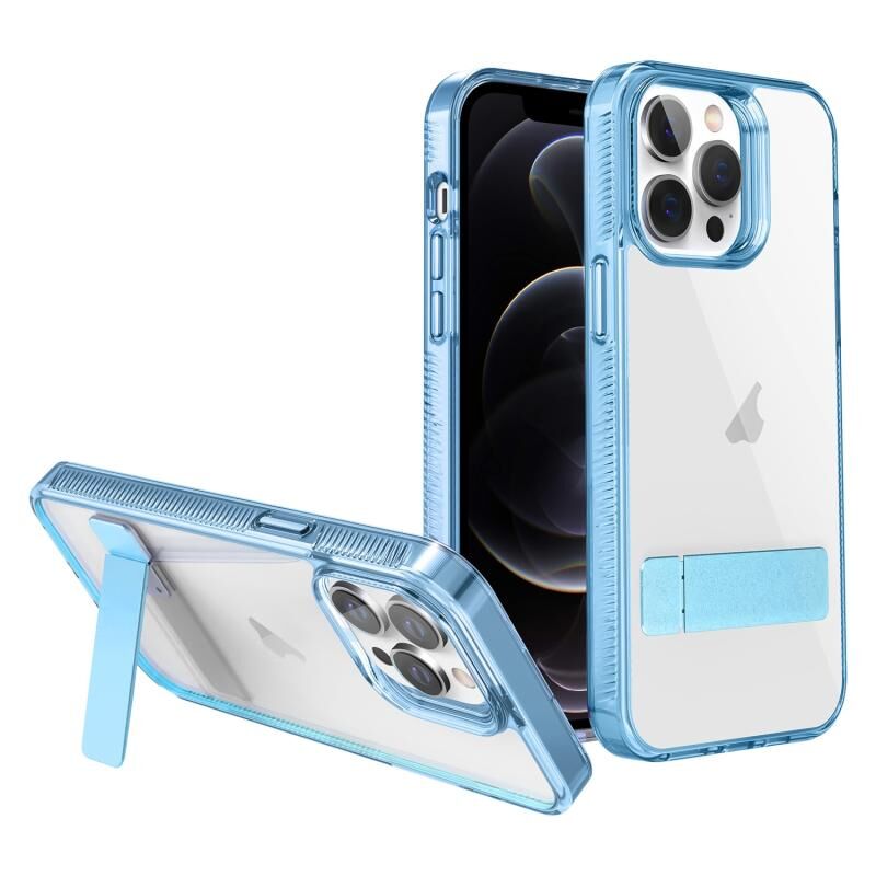 For iPhone 12 Pro High Transparent Holder Phone Case(Blue)