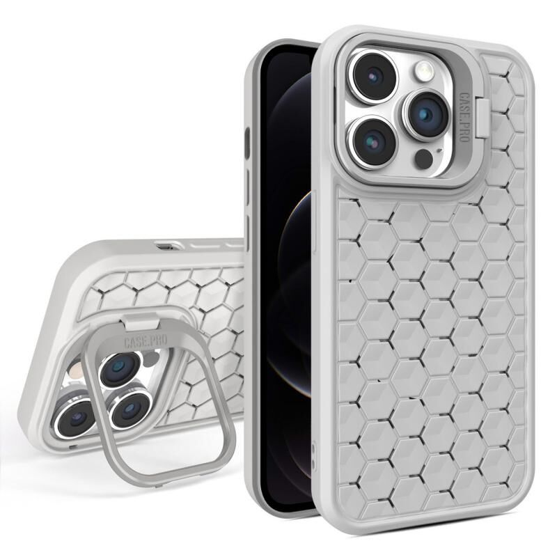 For iPhone 12 Pro Honeycomb Radiating Lens Holder Magsafe Phone Case(Grey)
