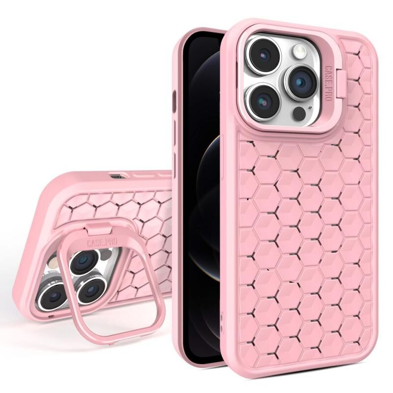 For iPhone 12 Pro Honeycomb Radiating Lens Holder Magsafe Phone Case(Pink)