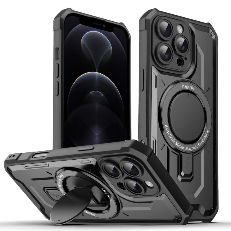For iPhone 12 Pro Invisible Bracket MagSafe Magnetic Phone Case(Black)