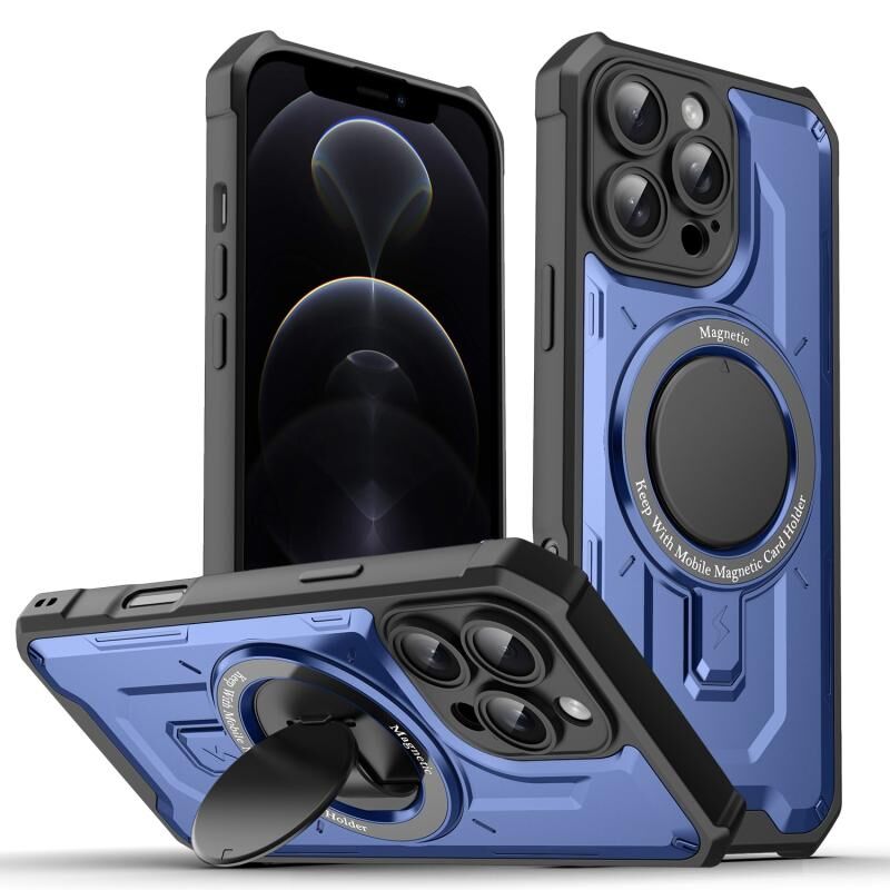 For iPhone 12 Pro Invisible Bracket MagSafe Magnetic Phone Case(Blue)